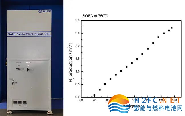 近日,大連化物所燃料電池研究部燃料電池系統科學與工程研究中心(DNL0301組)研制出固體氧化物電解池制氫樣機,額定產氫量為2Nm3/h。