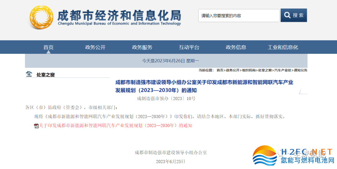 6月25日,成都市制造強市建設領導小組辦公室印發《成都市新能源和智能網聯汽車產業發展規劃(2023—2030年)》。
