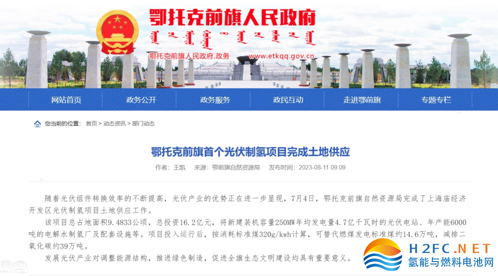 7月4日,鄂托克前旗自然資源局完成了上海廟經(jīng)濟(jì)開(kāi)發(fā)區(qū)光伏制氫項(xiàng)目土地供應(yīng)工作。
