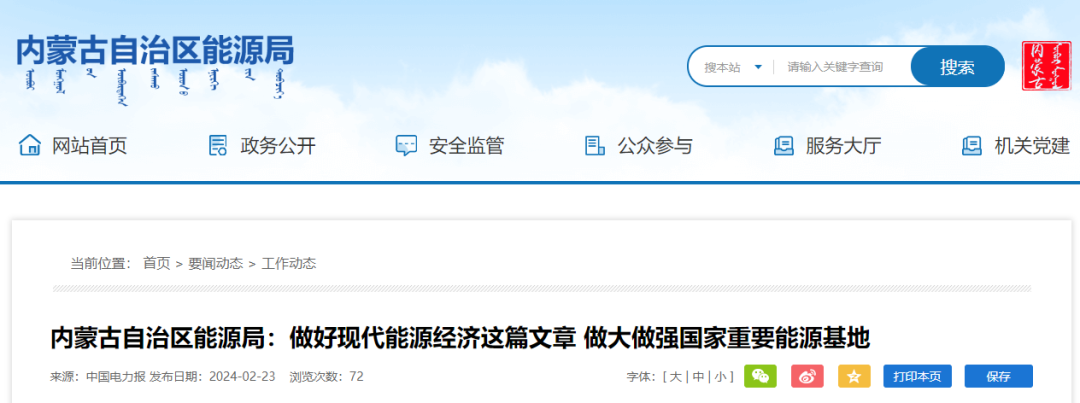 2月23日,內蒙古能源局發布了題為《做好現代能源經濟這篇文章 做大做強國家重要能源基地》的文章,對2023年能源工作進行回顧,并提出將在2024年做好5方面工作。