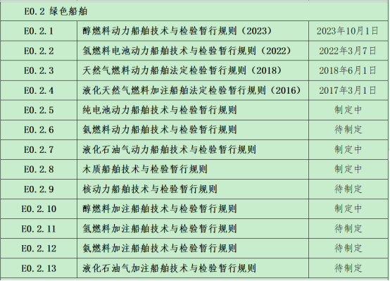 船舶技術(shù)規(guī)范清單顯示,醇燃料動力船舶技術(shù)與檢驗暫行規(guī)則、氫燃料電池動力船舶技術(shù)與檢驗暫行規(guī)則已經(jīng)公布。