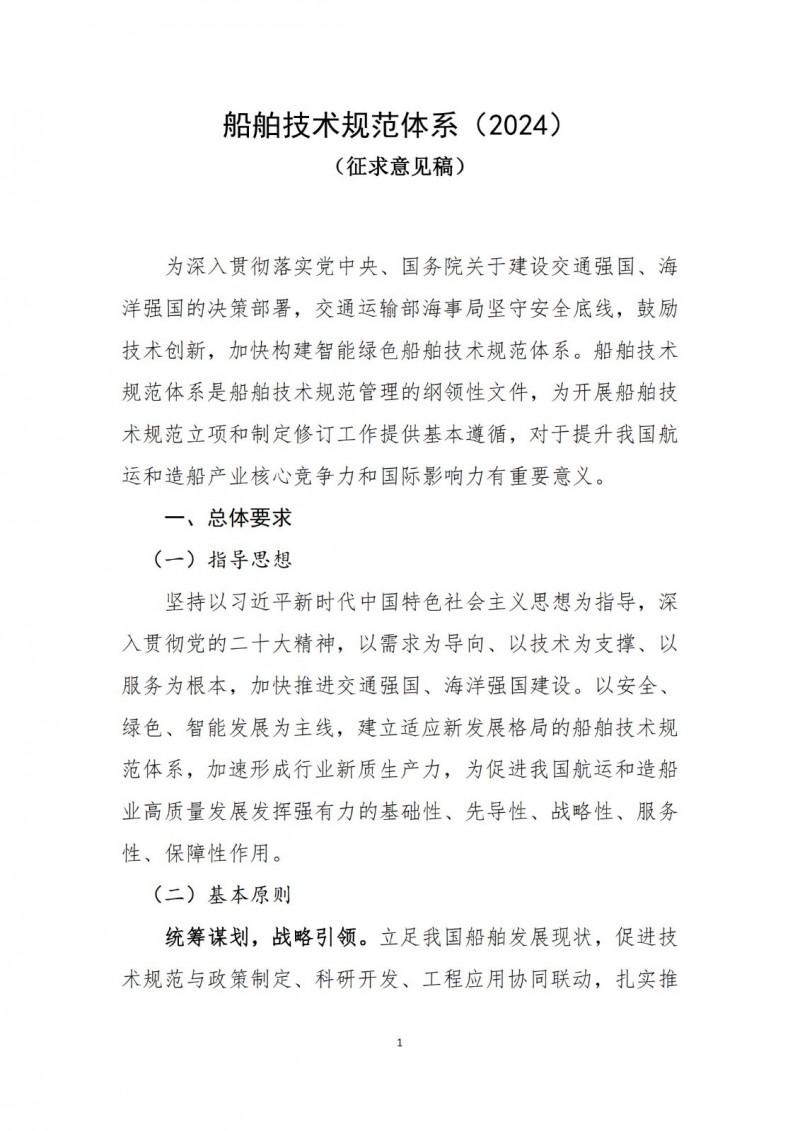 交通運輸部海事局關(guān)于征求《船舶技術(shù)規(guī)范體系(2024)》(征求意見稿)意見的通知