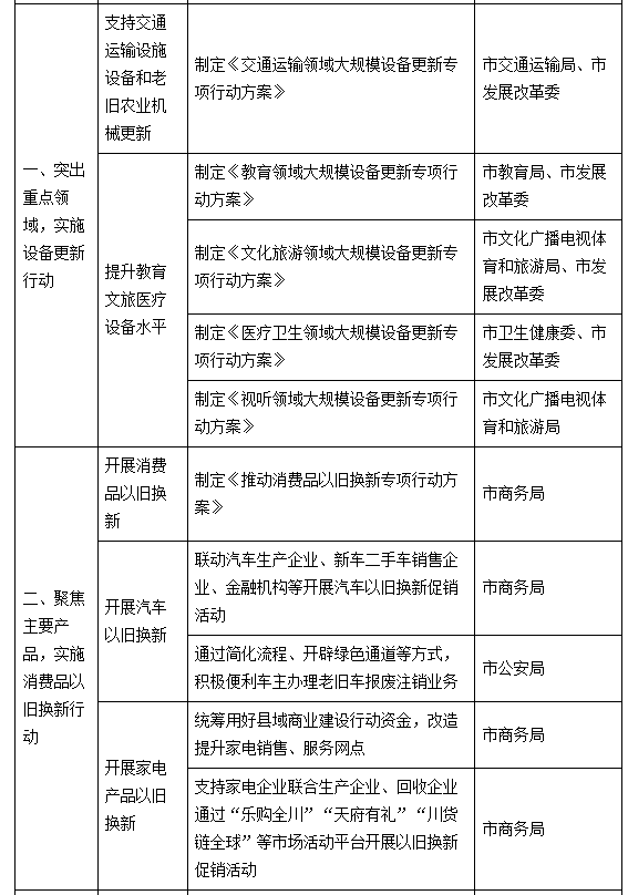 附件:推動大規模設備更新和消費品以舊換新重點舉措清單