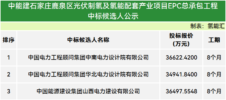 能建綠氫(石家莊)新能源有限公司,就“中能建石家莊鹿泉區(qū)光伏制氫及氫能配套產(chǎn)業(yè)項目EPC總承包工程”項目通過公開招標(biāo)方式進行采購,按規(guī)定程序進行了開標(biāo)、評標(biāo)、定標(biāo),
