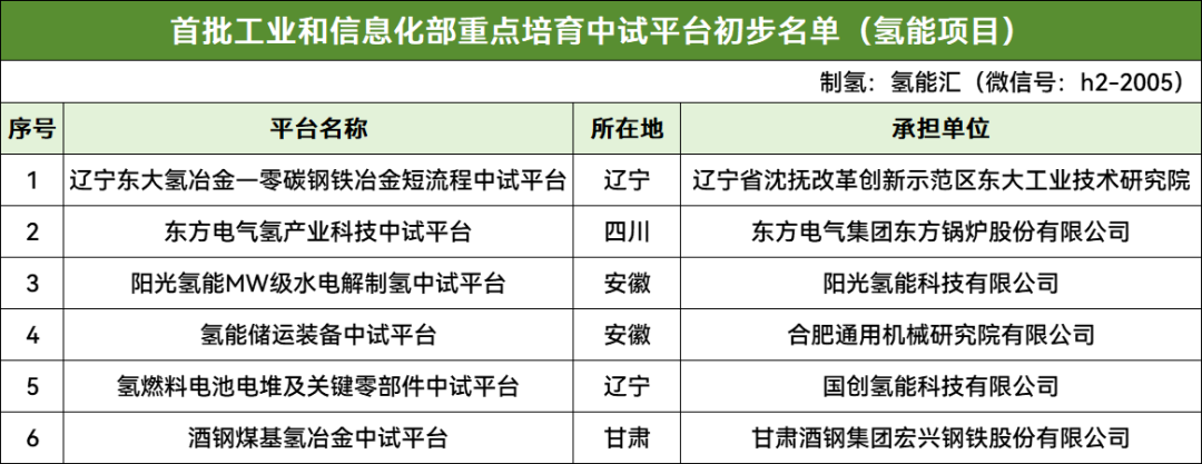 根據(jù)名單,共有242個(gè)平臺入選。其中有6個(gè)平臺涉及氫能領(lǐng)域,分別是: