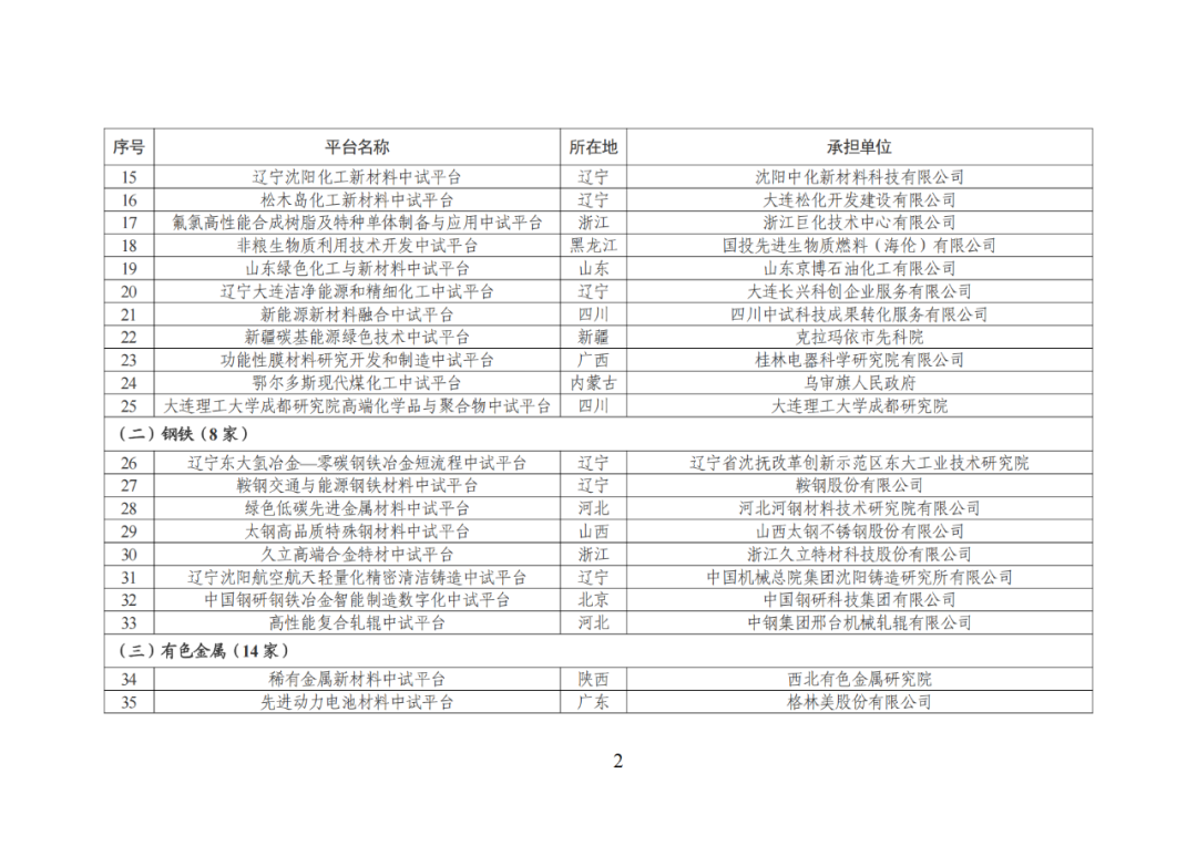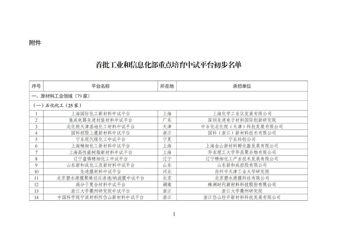 附件:首批工業(yè)和信息化部重點(diǎn)培育中試平臺初步名單