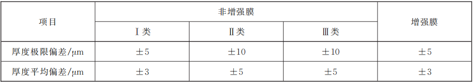 電解水制氫用質子交換膜厚度極限偏差和厚度平均偏差應符合表1的規定。