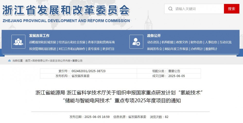 6月5日,浙江省發改委發布《浙江省能源局 浙江省科學技術廳關于組織申報國家重點研發計劃“氫能技術”“儲能與智能電網技術”重點專項2025年度項目的通知》,本批次“氫能技術”“儲能與智能電網技術”重點專項原則上由省能源局組織推薦。請各地及時將有關情況傳達申報單位,并指導申報單位于2025年7月2日12:00前通過國家科技管理信息系統上報至省能源局。