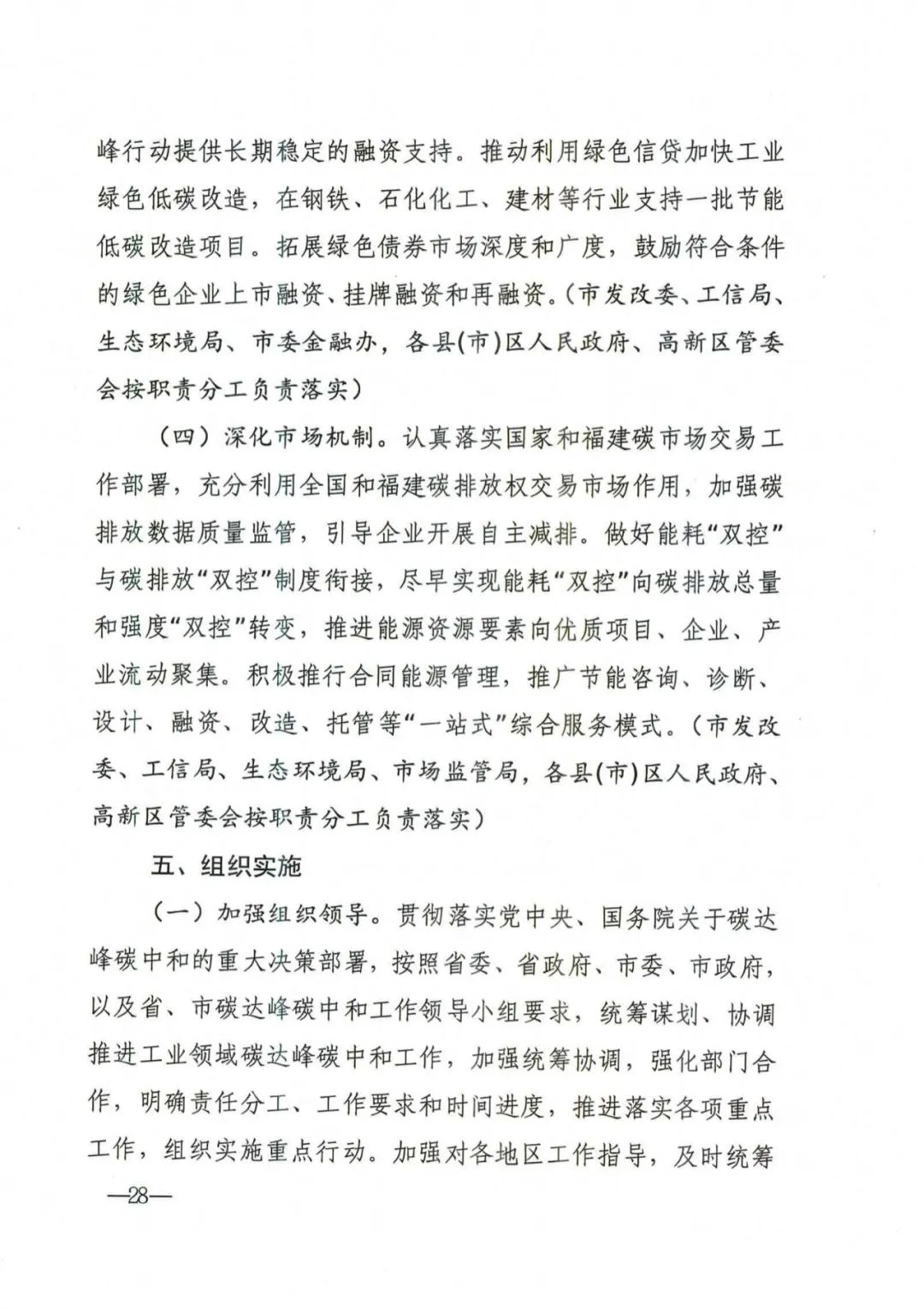 《福州市工業領域碳達峰實施方案》已經市政府同意,現印發你們,請認真組織實施。