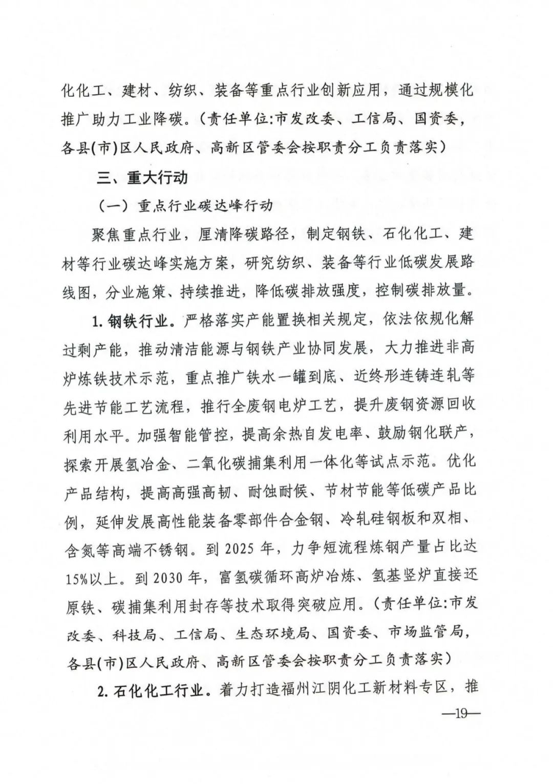 近日,福州市工業和信息化局 福州市發展和改革委員會 福州市生態環境局關于印發福州市工業領域碳達峰實施方案的通知。文件指出,