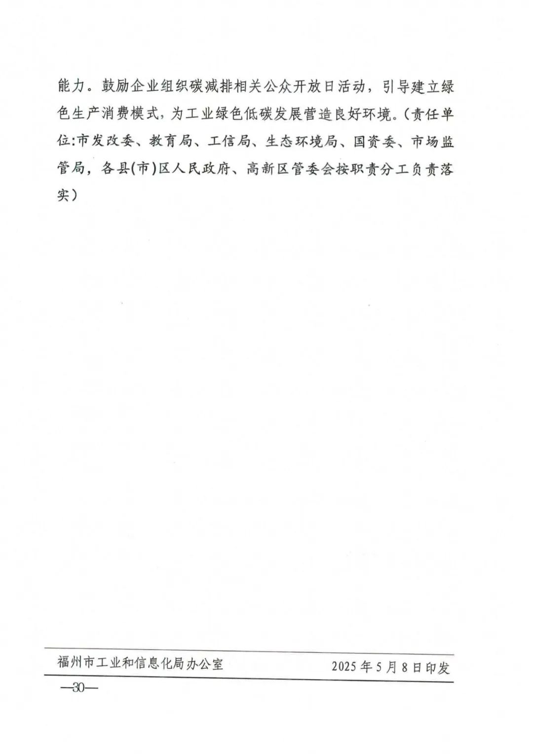 福州市工業和信息化局 福州市發展和改革委員會 福州市生態環境局關于印發福州市工業領域碳達峰實施方案的通知