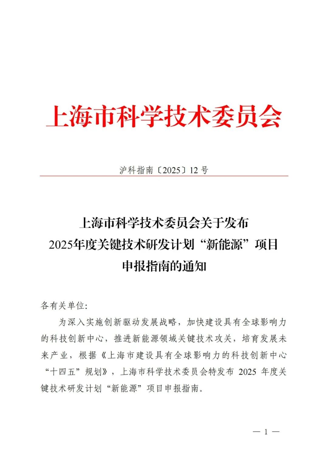 5月21日,上海市科學(xué)技術(shù)委員會關(guān)于發(fā)布2025年度關(guān)鍵技術(shù)研發(fā)計劃“新能源”項目申報指南的通知。