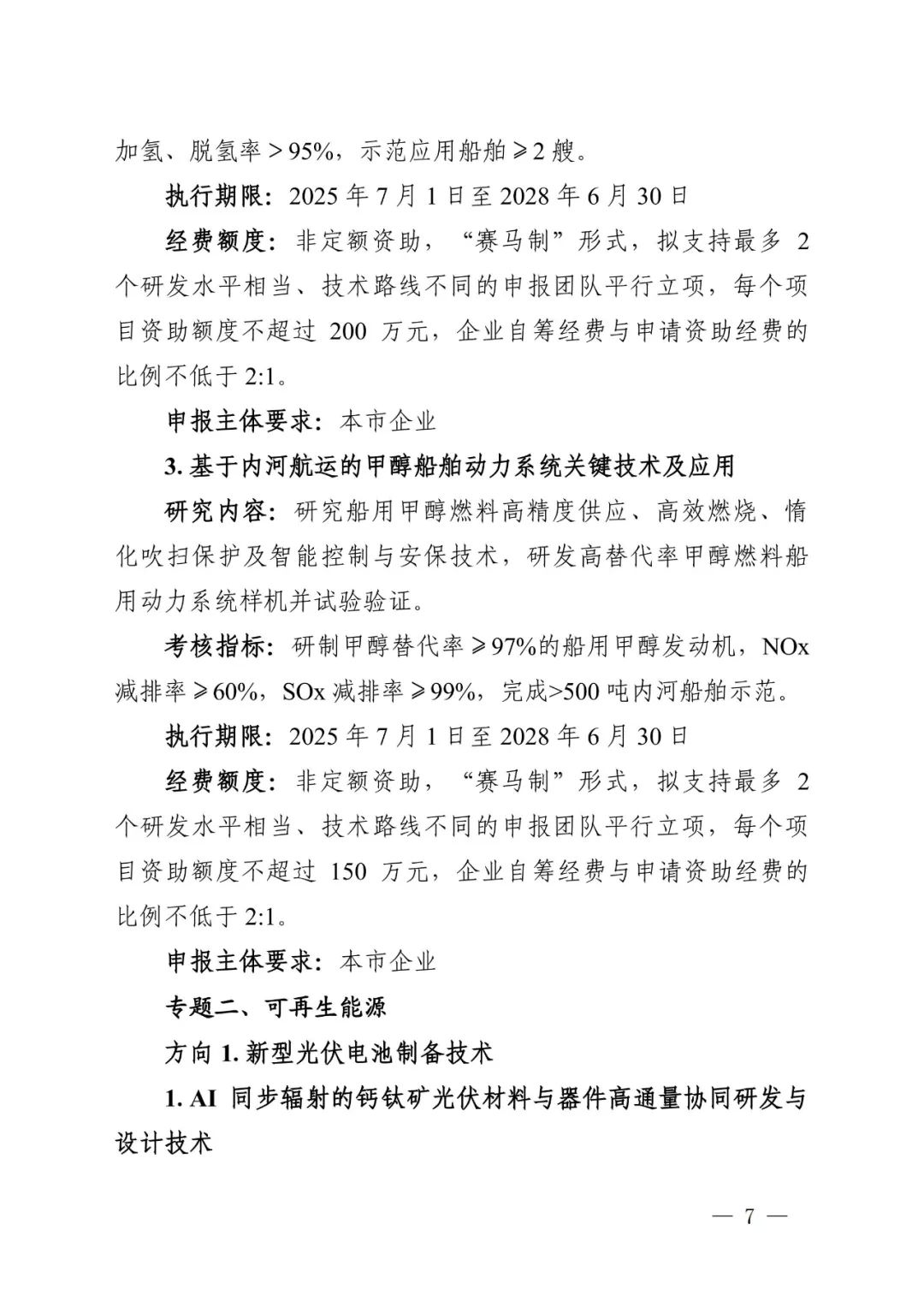 基于氫內(nèi)燃機(jī)的船舶動力系統(tǒng)關(guān)鍵技術(shù)及應(yīng)用,每個項目資助額度不超過200萬元。