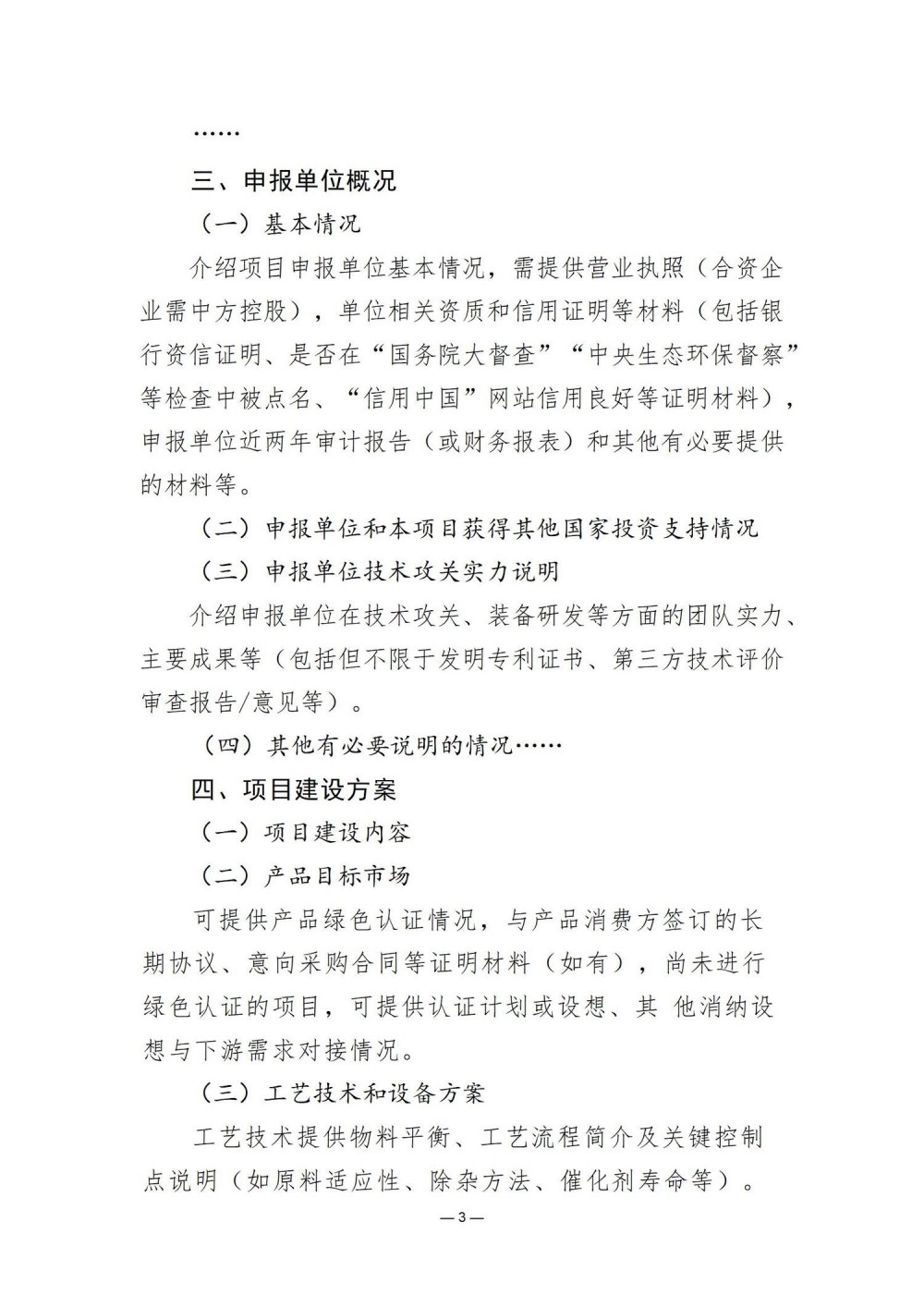 申報要求申報項目原則上應為已建成或計劃于2026年底前建成項目,產品目標市場較為明確,項目應具備技術先進性,所采用的技術路線、工藝裝備達到業內先進水平,在突破技術瓶頸、提升裝備水平、降低生產成本、促進綠色發展等方面具有優勢。試點項目應于2027年6月底前實現高負荷穩定生產,并于2027年12月底前完成試點工作。