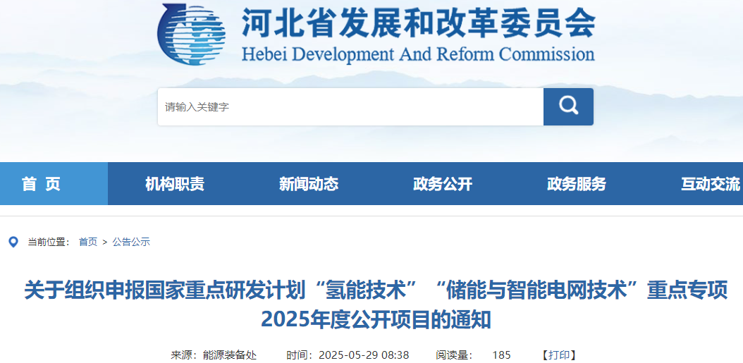 5月29日,河北省發展和改革委員會發布《關于組織申報國家重點研發計劃“氫能技術”“儲能與智能電網技術”重點專項2025年度公開項目的通知》。