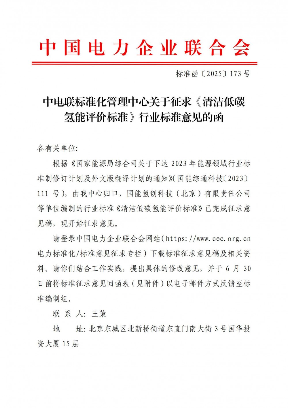 中電聯標準化管理中心關于征求《清潔低碳氫能評價標準》行業標準意見的函(蓋章).pdf