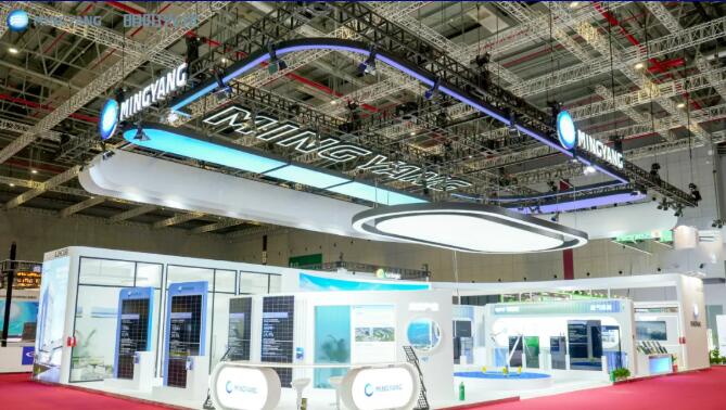 在能源結構加速轉型的關鍵時期,單一的能源解決方案已難以滿足企業多元化、復雜化的用能需求。“風光儲氫一體化”模式,通過深度融合風能產業、光伏發電、儲能系統與氫能技術,構建起靈活高效、清潔低碳的綜合能源體系,正成為企業實現綠色發展與能源安全的最佳路徑。展會現場,明陽光伏新增“雙轉子漂浮式海上風電平臺”,“氫能產業”及“儲能產業”等明陽產品的展示區域,通過場景化的產品矩陣組合,為企業提供量身定制的能源解決方案。