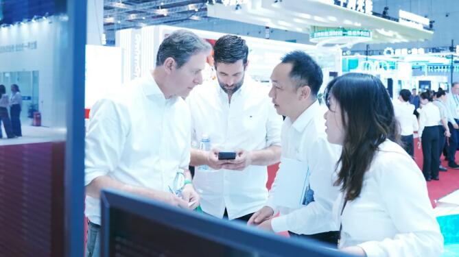 展會現場,明陽光伏展臺展示產品涵蓋新一代N型晶硅太陽能電池、鈣鈦礦薄膜技術及光電玻璃以及儲能、氫能等板塊,其中多款產品前人頭攢動,參觀者紛紛駐足,圍繞其轉換效率、極致可靠性與度電成本等核心優勢,與技術專家展開熱烈探討。這波關注熱潮的背后,不僅是明陽產品實力的有力印證,更折射出市場對光伏技術創新價值與綠色能源降本增效路徑的全新聚焦與深度認同。