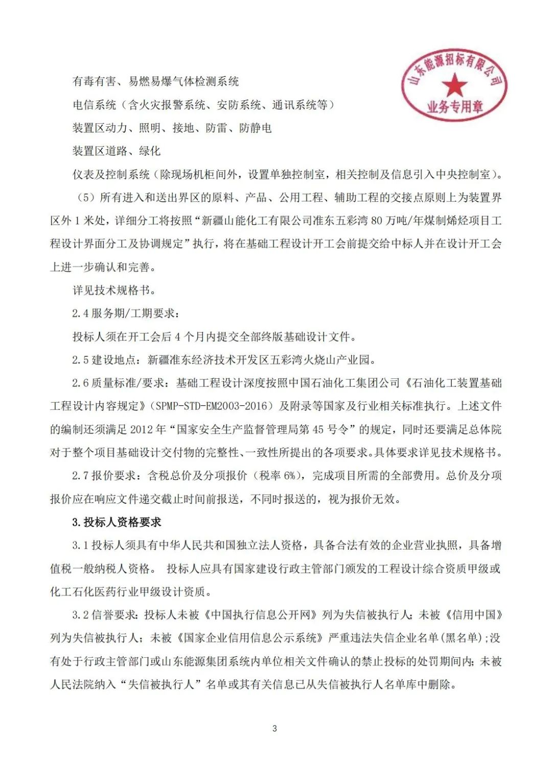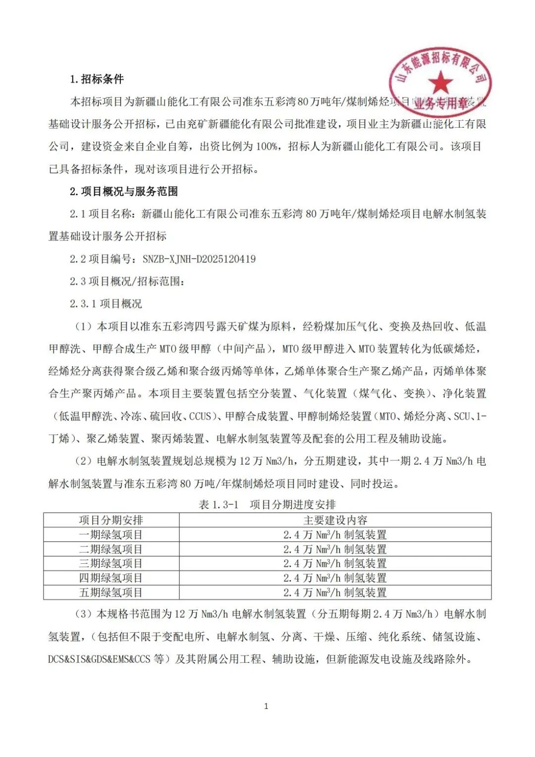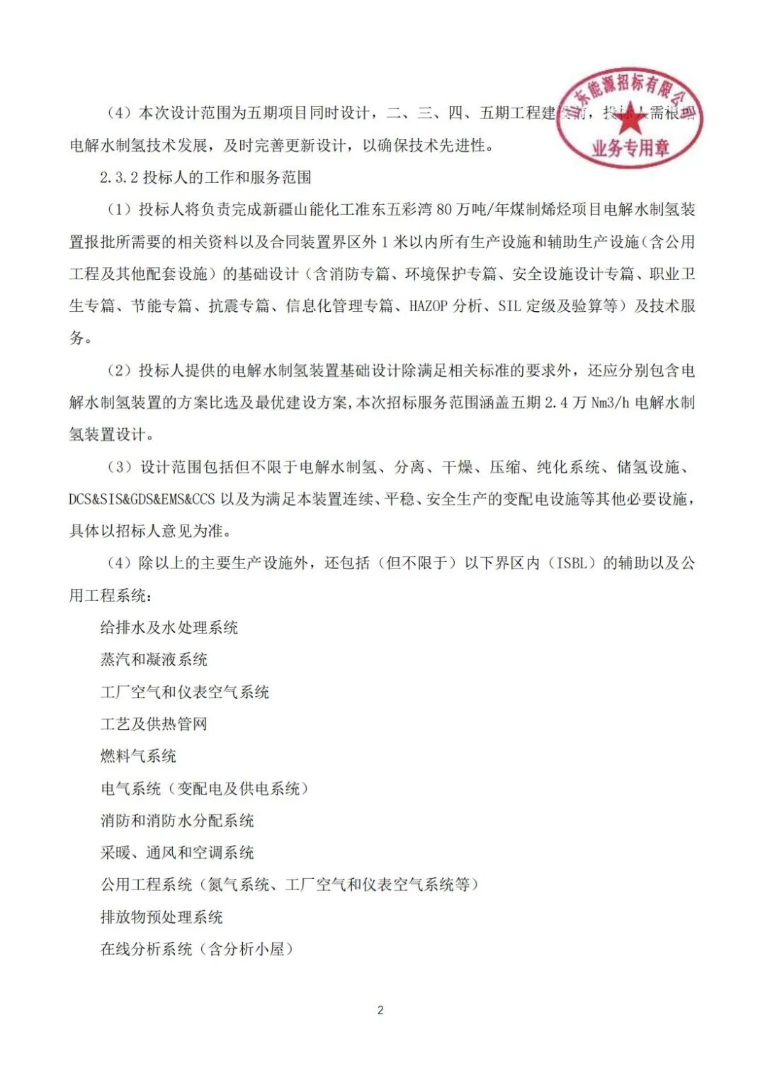 【新疆山能化工有限公司準東五彩灣80萬噸年煤制烯烴項目電解水制氫裝置基礎(chǔ)設(shè)計服務(wù)公開招標】招標公告