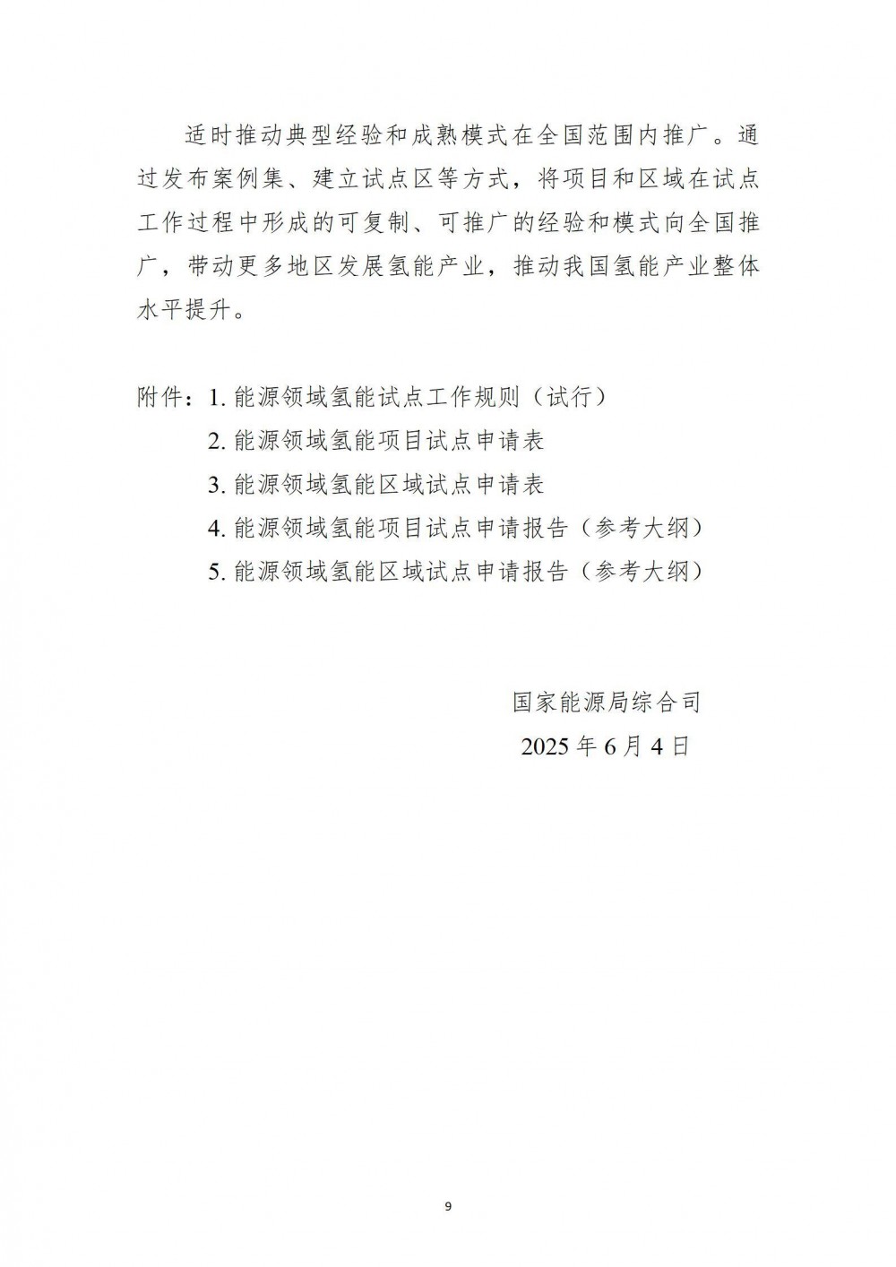 附件:《國家能源局綜合司關于組織開展能源領域氫能試點工作的通知》(國能綜通科技〔2025〕91號)