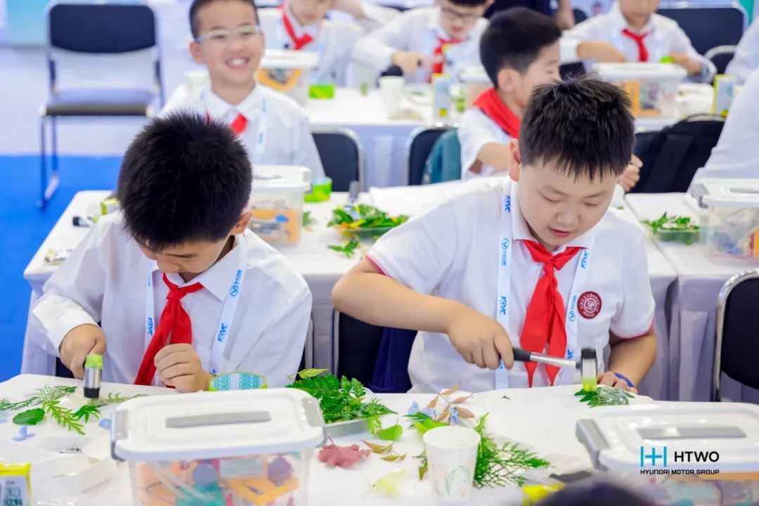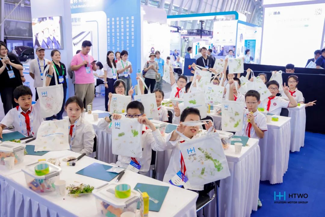 在展會期間,現(xiàn)代汽車HTWO廣州還為來自上海交通大學(xué)附屬實驗小學(xué)的40名小學(xué)生,帶來了氫能科普課堂活動,通過科普氫能知識,讓學(xué)生提高環(huán)保意識,成為綠色能源的用擁護(hù)者。課程寓教于樂,除了氫能理論知識教學(xué),還融入了氫能模型汽車實驗。通過原理學(xué)習(xí)和實驗操作,學(xué)生們親身體驗了氫氣驅(qū)動汽車的完整能量轉(zhuǎn)化鏈——“水分解制氫、氫氧反應(yīng)發(fā)電、電能驅(qū)動機(jī)械”的綠色低碳循環(huán)。同時,課堂設(shè)置植物拓印帆布包環(huán)保DIY環(huán)節(jié),強(qiáng)調(diào)減少化學(xué)染料的使用,鍛煉學(xué)生的動手能力和創(chuàng)新思維,引導(dǎo)學(xué)生們資源循環(huán)利用的環(huán)保理念,為保護(hù)地球環(huán)境做貢獻(xiàn)。學(xué)生們紛紛表示,氫能科普課堂活動生動有趣,學(xué)有所用,將從小事做起愛護(hù)地球。