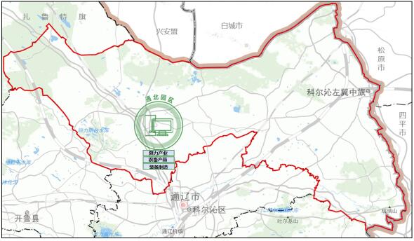 通北產業園位于科左中旗西部,縱跨敖包蘇木和花吐古拉鎮,總規劃面積137.28平方公里,建成區面積19.83平方公里。園區既是國家現代農業產業園重要組成部分,也是通遼國家農業科技園的核心區。園區面向通遼市主城區,緊鄰通遼市經濟技術開發區,交通優勢和區位優勢明顯,距通遼市新城區僅15公里,距離通遼機場30公里,距離通遼北高速口5公里。規劃四至范圍:西臨國道304線、通魯高速,東至花吐古拉鎮蓮花泡子嘎查、南與開發區接壤,北至科爾沁牛業產業園。通北產業園在通遼經濟技術開發區高新技術產業園增量配電網B區范圍內。
