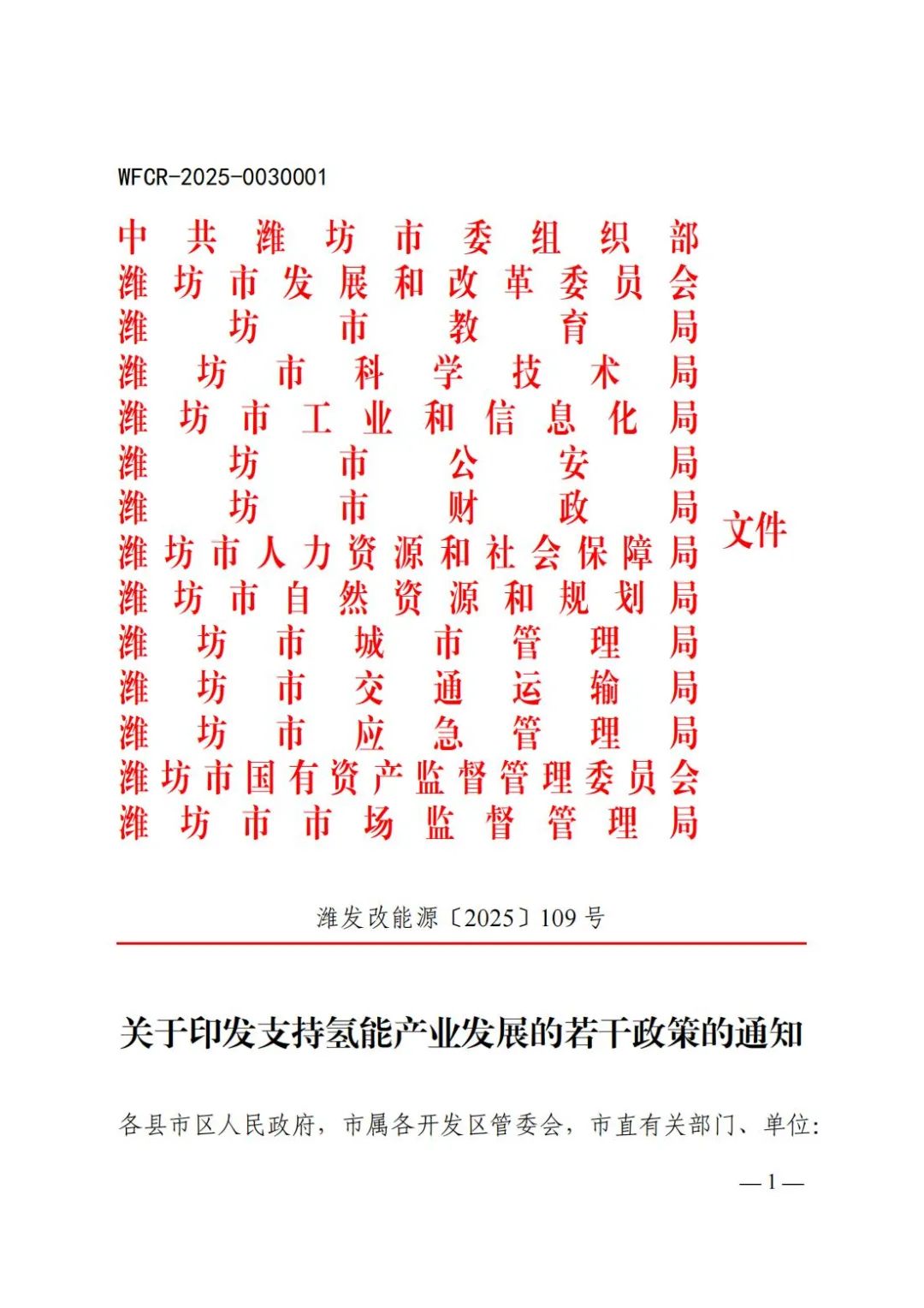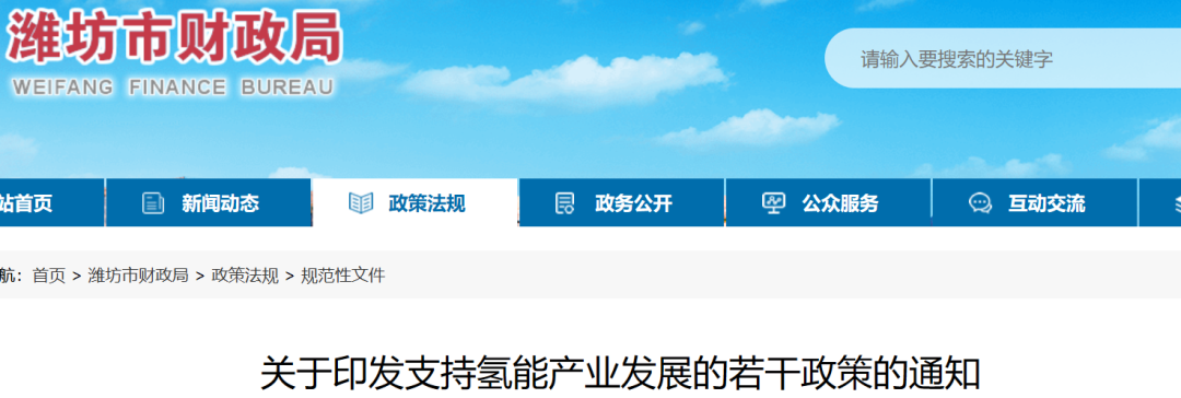 近日,濰坊市財政局發布《關于印發支持氫能產業發展的若干政策的通知》。