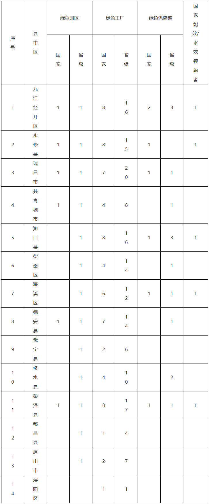 7.打造綠色低碳園區示范標桿。鼓勵開發區、工業園區構建系統化、循環化產業鏈條,促進園區內企業采用能源資源綜合利用生產模式,推進集中供氣供熱、水資源循環使用、廢氣廢液廢渣資源化利用,提升園區資源綜合利用效能。推動九江經開區綠色低碳升級項目按期實施,達到預期目標。加快培育一批具有示范帶動效應的國家級綠色低碳工業園區示范標桿。到2027年,力爭新增國家級綠色園區4家,總量達到6家;新增省級綠色園區3家,實現省級綠色園區全覆蓋;推動共青高新區、修水工業園、彭澤工業園探索創建零碳園區。(責任單位:市工信局、市發改委)