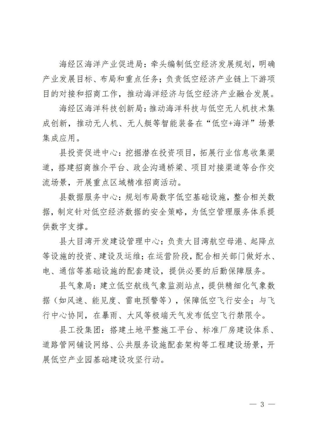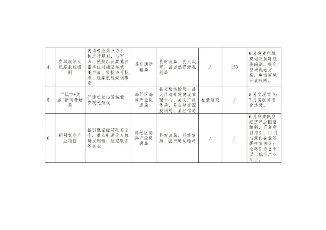 4.強(qiáng)化低空安全管理。構(gòu)建低空安全管理機(jī)制,明確各方管理責(zé)任,研究制定應(yīng)急處置管理辦法,加強(qiáng)對(duì)相關(guān)人員的教育培訓(xùn),提升風(fēng)險(xiǎn)防控和安全保障能力。(縣公安局牽頭,縣交通運(yùn)輸局、海經(jīng)區(qū)海洋產(chǎn)業(yè)促進(jìn)局、縣應(yīng)急管理局等單位配合)