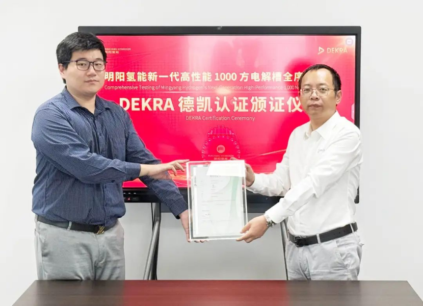 DEKRA德凱認證作為擁有近百年經(jīng)驗的全球領先第三方檢測認證機構,以標準嚴苛、公信力強著稱。其認證過程涵蓋產(chǎn)品性能、安全性、可靠性等全維度評估,本次明陽氫能MYH-K-1000型產(chǎn)品通過該認證,意味著其核心指標包括電耗、安全性等均達到國際先進標準,同時有部分指標超過遠超標準,為產(chǎn)品的技術先進性提供了有效的第三方權威佐證。