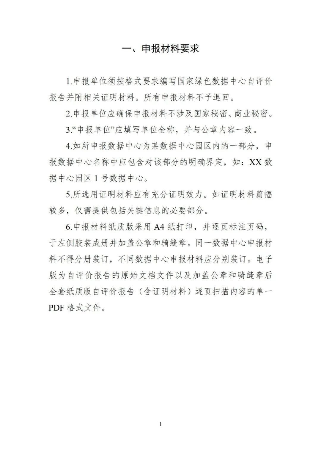 (一)請(qǐng)各省級(jí)工業(yè)和信息化主管部門、相關(guān)集團(tuán)公司、相關(guān)部門于2025年8月1日前將國家綠色數(shù)據(jù)中心推薦意見及自評(píng)價(jià)材料(紙質(zhì)版一式兩份)報(bào)送至工業(yè)和信息化部(節(jié)能與綜合利用司),電子版通過“工業(yè)節(jié)能與綠色發(fā)展管理平臺(tái)”(https://green.miit.gov.cn)同步報(bào)送。