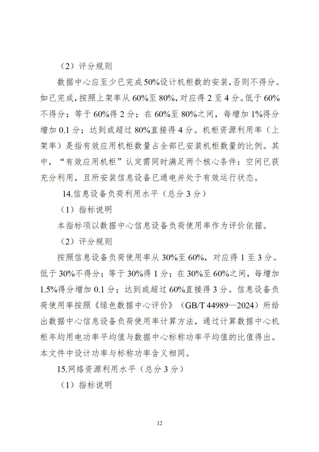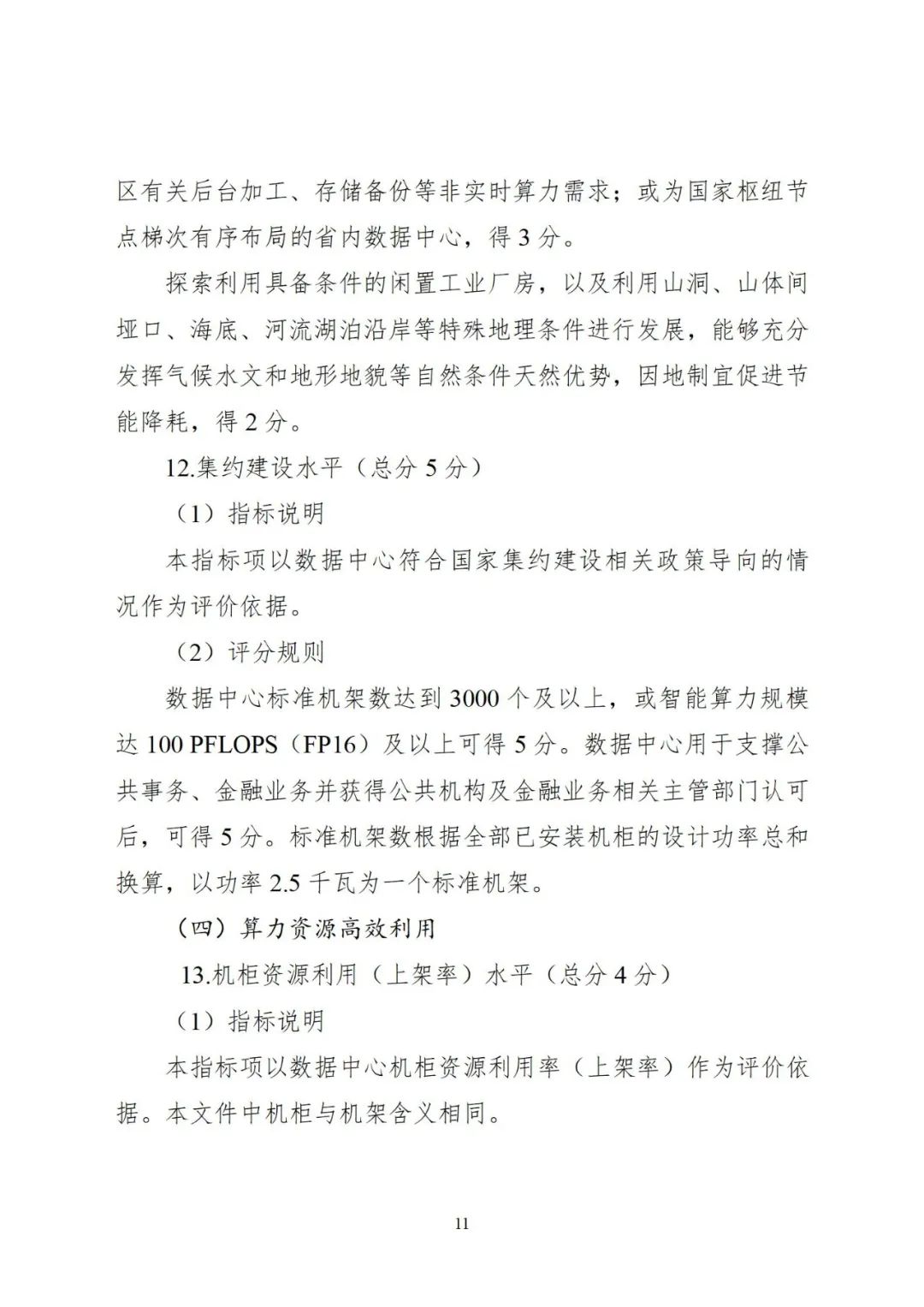 (三)數(shù)據(jù)中心規(guī)模不小于3000個(gè)標(biāo)準(zhǔn)機(jī)架(公共機(jī)構(gòu)、金融領(lǐng)域數(shù)據(jù)中心除外),上架率不低于60%,算力資源使用率處于行業(yè)先進(jìn)。