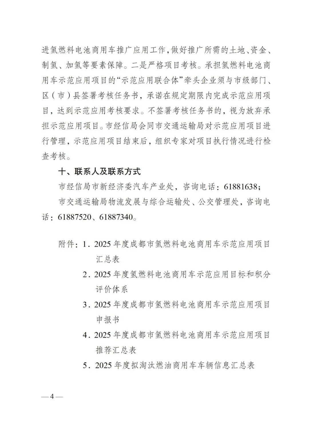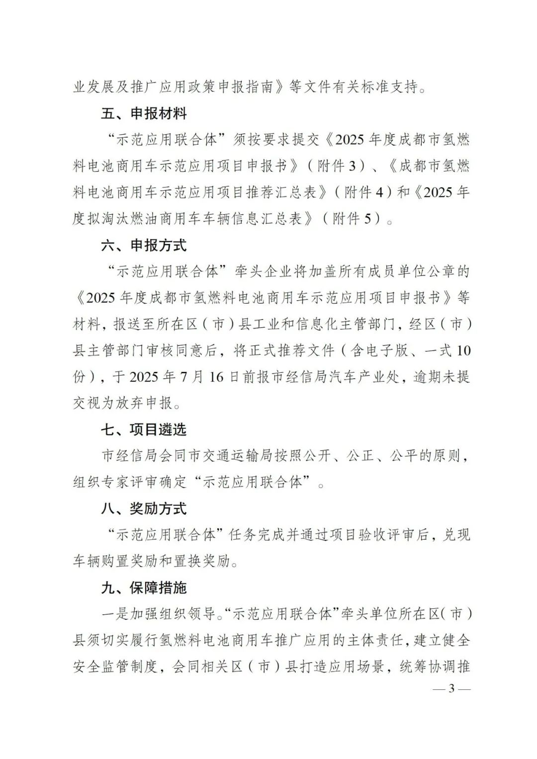 近日,成都市經濟和信息化局 成都市交通運輸局發布《關于開展2025年度成都市氫燃料電池商用車示范應用項目(第一批)申報工作的