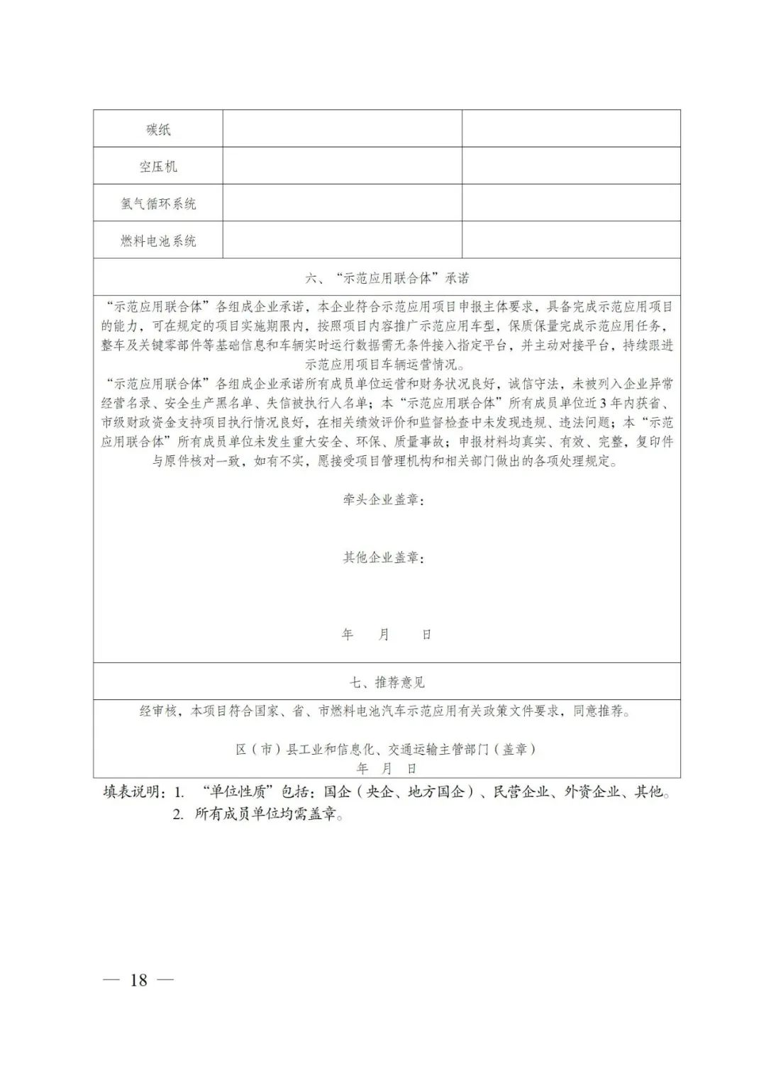 氫燃料電池商用車示范應用項目采取“應用場景示范+‘示范應用聯合體’申報”方式實施,要求氫燃料電池商用車示范應用項目的申報主體為“示范應用聯合體”,“示范應用聯合體”面向氫燃料電池商用車產業鏈相關企業,由一家氫燃料電池系統企業牽頭,會同整車制造企業、車輛運營單位、加氫站運營單位等組成。