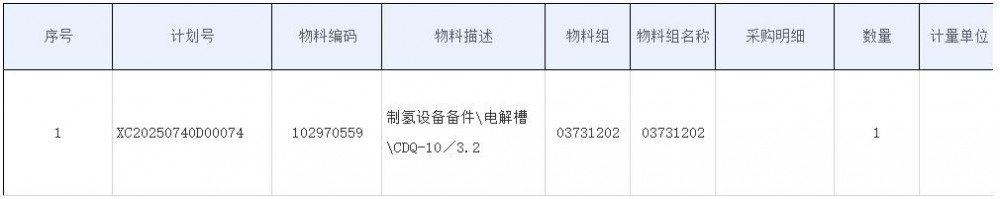 近日,華能山東分公司濟(jì)寧電廠制氫機(jī)備件電解槽采購(gòu)項(xiàng)目采購(gòu)結(jié)果公告。