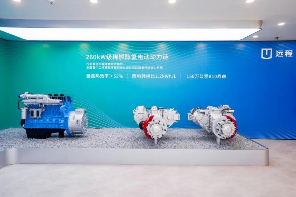 遠程基于醇氫3.0平臺開發的260kW級稀燃醇氫電動動力鏈,是全國首個完成工信部和環保部雙認證達標的醇氫稀燃發動機系統,最高熱效率>53%,在行業內首創甲醇稀燃技術路線產業化落地,目前已實現整車搭載投放,最低發電成本僅需0.85元/kWh,最優醇電轉換比超2.2kWh/L,使用場景可覆蓋干線物流、工程自卸、大宗倒短等運輸場景需求。