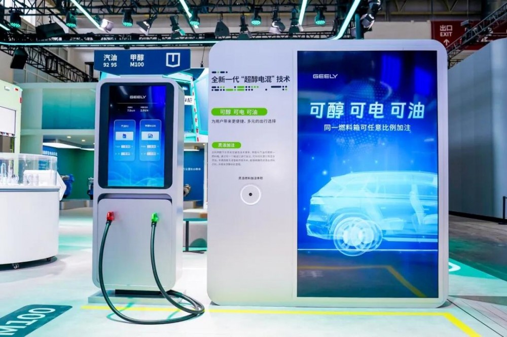 吉利推出的雷神EF醇氫電動技術也是本屆鏈博會重要亮點。雷神EF醇氫電動技術可實現甲醇與汽油通過同一加注口,進入同一燃料箱。無論用戶是先加注甲醇還是汽油,兩者任意比例混合,系統都能智能識別。這項技術基于吉利自主研發的智能傳感系統,其原理是通過精確感知流場-電場的細微變化,實時智能分析靈活燃料混合比,精確控制混合燃料的燃料、進氣、點火等參數,確保燃料的高效燃燒,動力充沛平順,排放清潔低碳。展臺現場,遠醇加注站模擬裝置,吸引了大量觀眾參觀體驗。