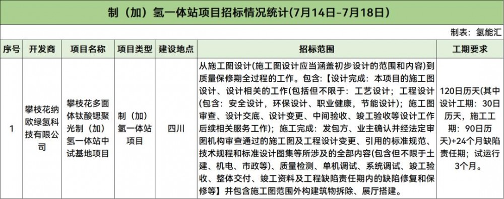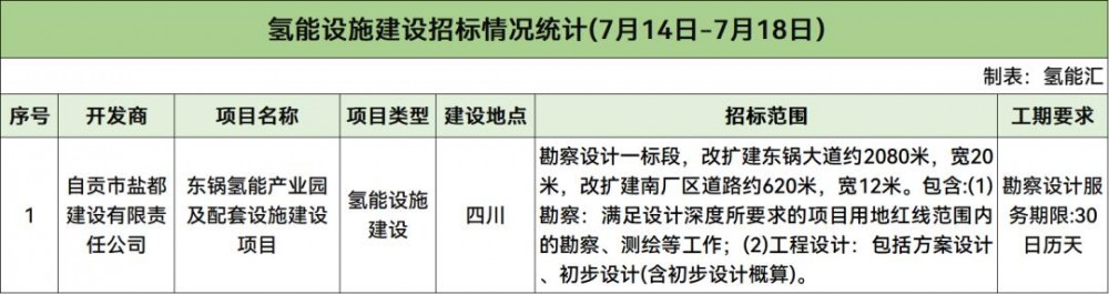 1個氫能設(shè)施建設(shè)項目招標(biāo)