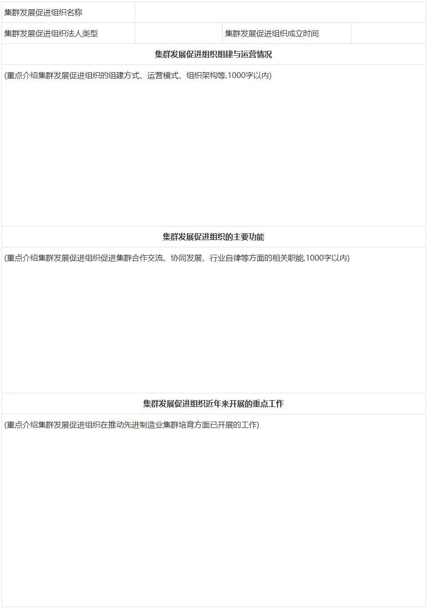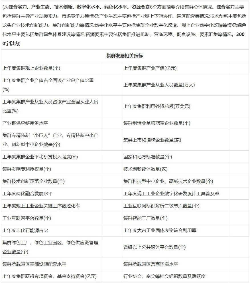 貴州省先進制造業集群申報信息采集表