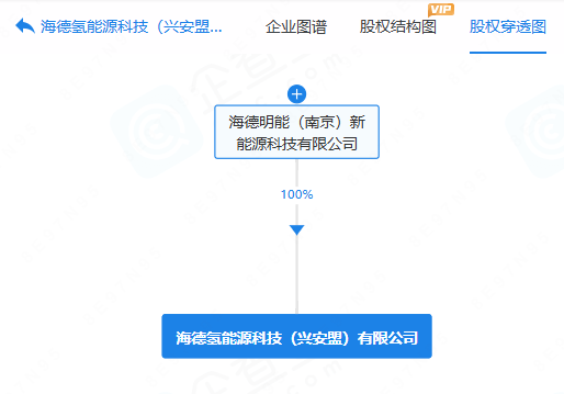 據(jù)顯示,海德氫能源科技(江蘇)有限公司由海德明能(南京)新能源科技有限公司100%持股。
