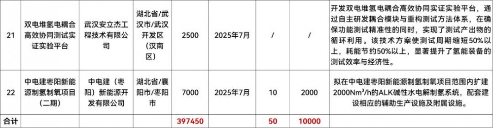 湖北氫能備案項目22個,項目投資合計為397450萬元,規模總計50MW,制氫規模總計10000Nm3/h。