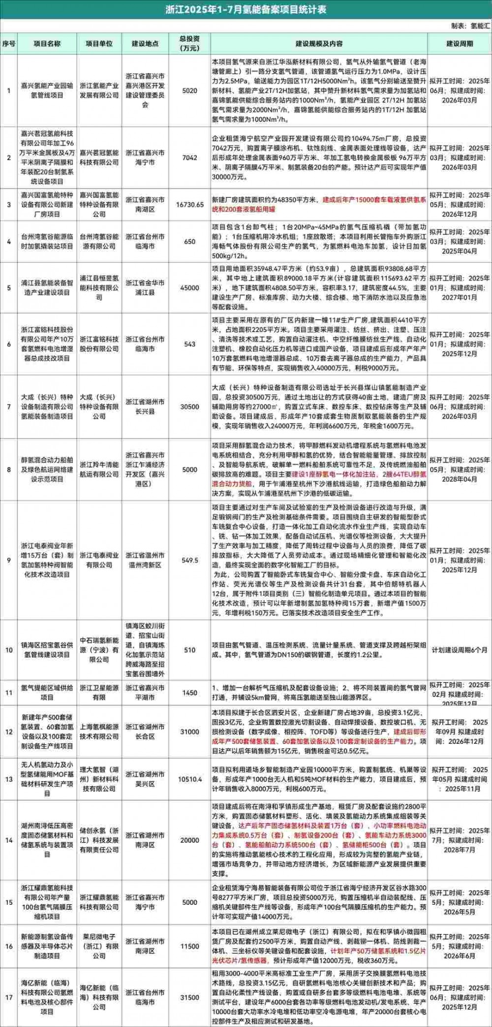 浙江氫能備案項目33個,項目投資合計為453718.07萬元。
