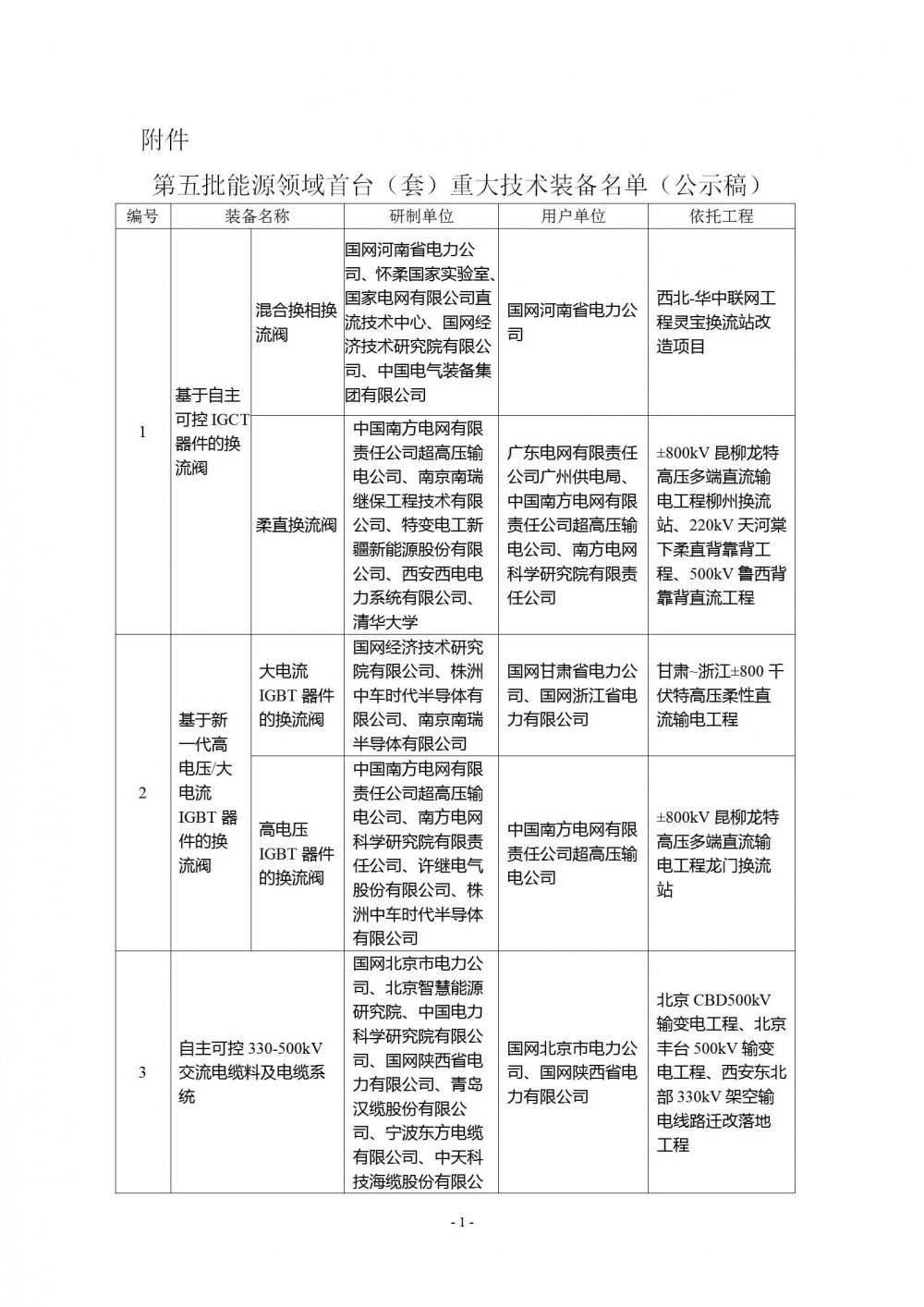 國家能源局綜合司關(guān)于公示第五批能源領(lǐng)域首臺(套)重大技術(shù)裝備的通知