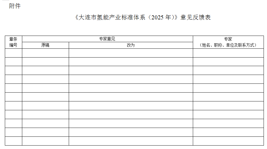 關(guān)于征求《大連市氫能產(chǎn)業(yè)標準體系(2025年)》意見的函