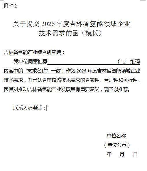 2.關于提交2026年度吉林省氫能領域企業技術需求的函(模板).doc