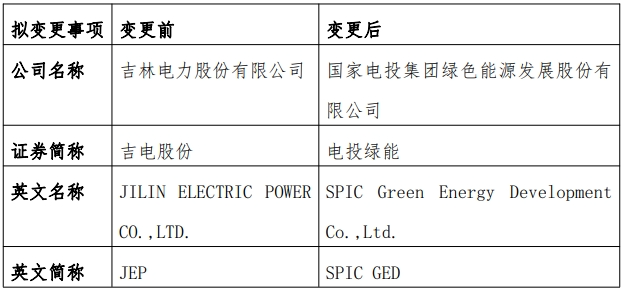 8月21日晚,國(guó)家電投上市公司吉電股份發(fā)布《關(guān)于擬變更公司名稱及證券簡(jiǎn)稱的公告》。公告稱: