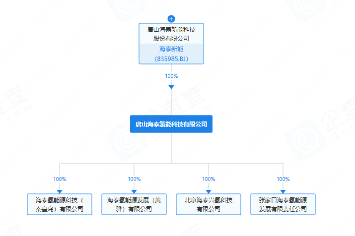 8月13日,海泰氫能源發展(黃驊)有限公司成立,注資500萬元,該公司為唐山海泰新能科技股份有限公司(簡稱“海泰新能”)全資孫