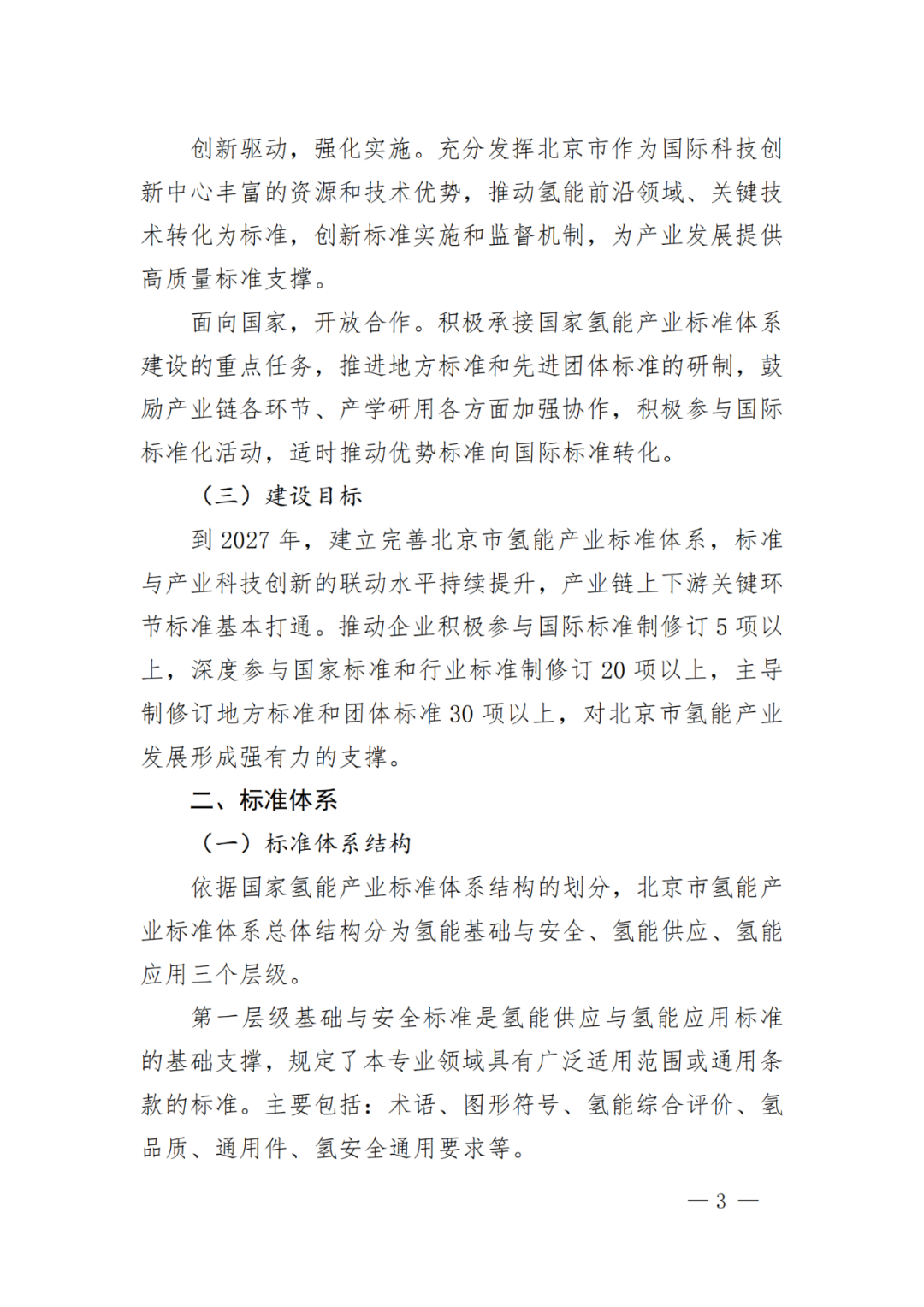 9月3日,北京市經信局在官網發布了《北京市氫能產業標準體系》(以下簡稱《體系》)。《體系》提出,到2027年,建立完善北京市氫