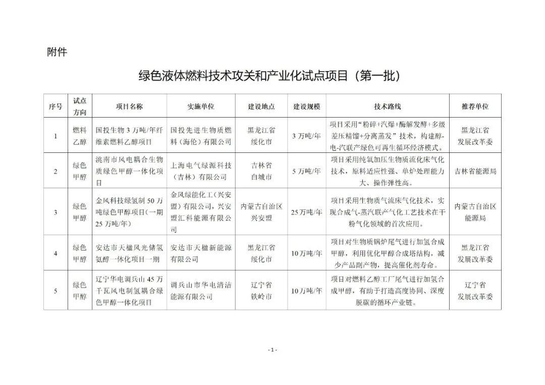 國家能源局綜合司關于開展綠色液體燃料技術攻關和產(chǎn)業(yè)化試點工作(第一批)的通知