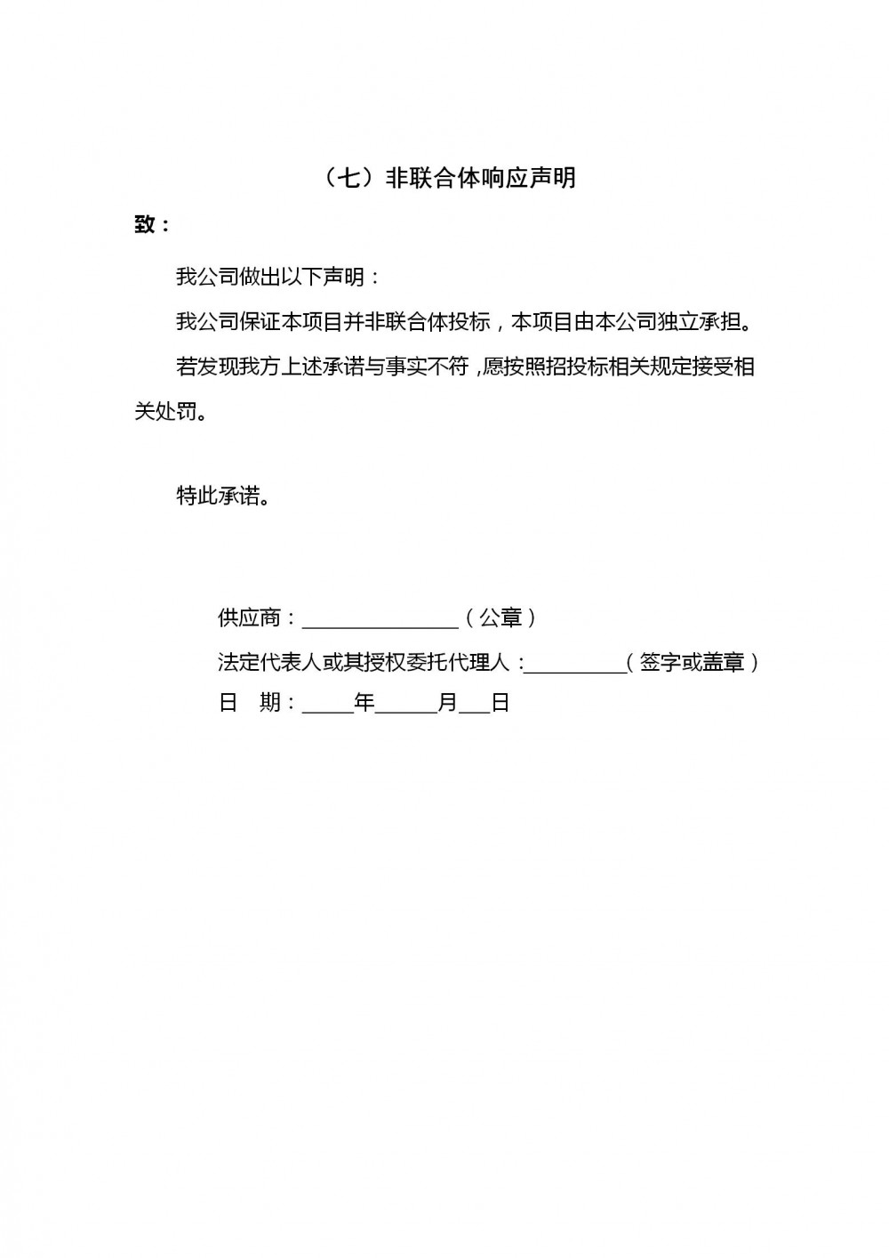 5.2供應商須按照附件格式要求提供響應材料真實一致性保證承諾書。